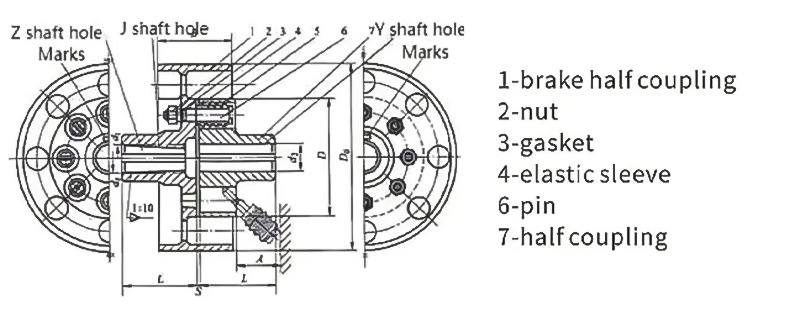 1. Благодаря зазору между круглым отверстием на фланце упругой втулки и деформации упругой втулки муфта имеет определенную компенсацию двух относительных смещений и характеристик амортизации.